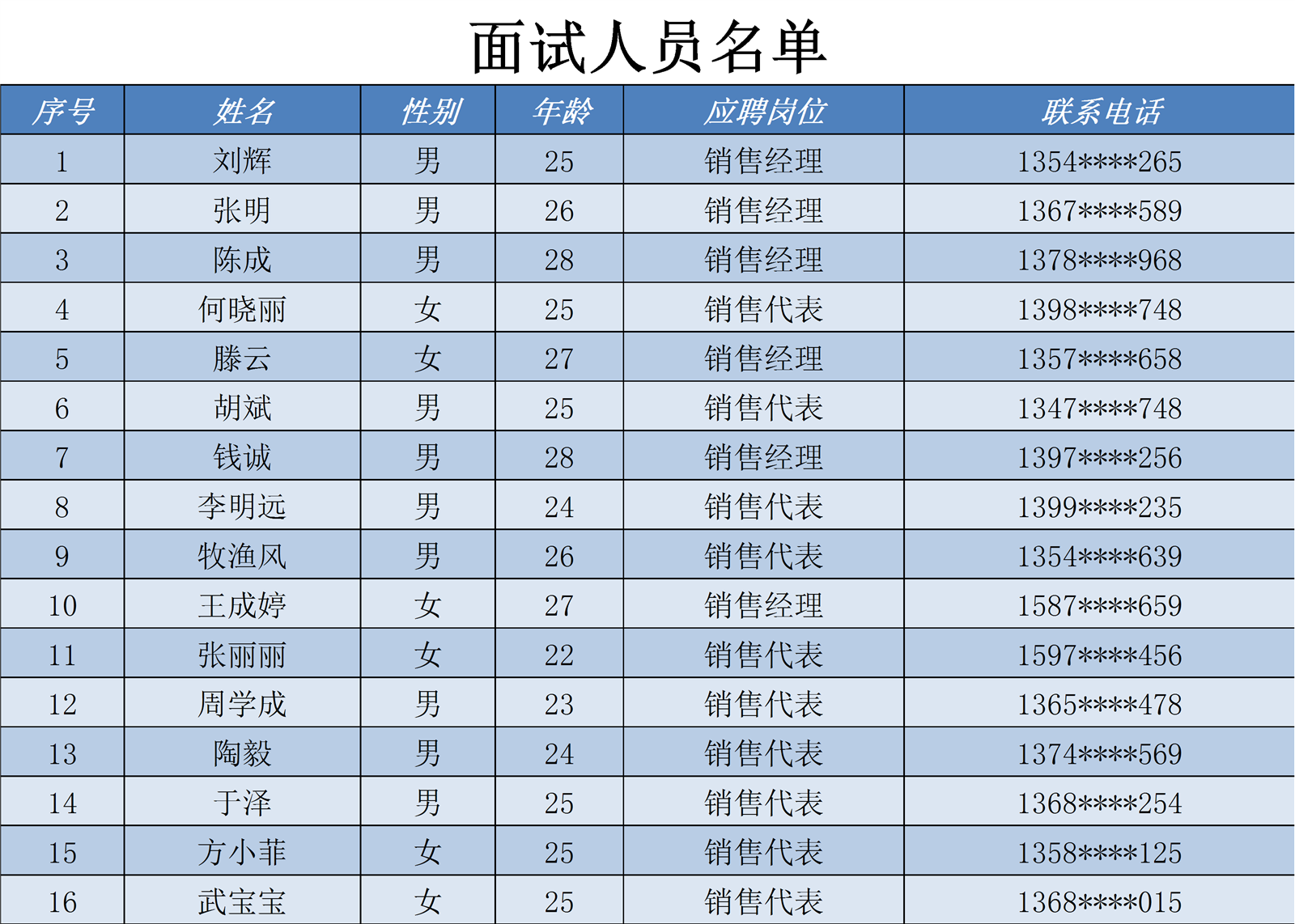 面试人员名单表