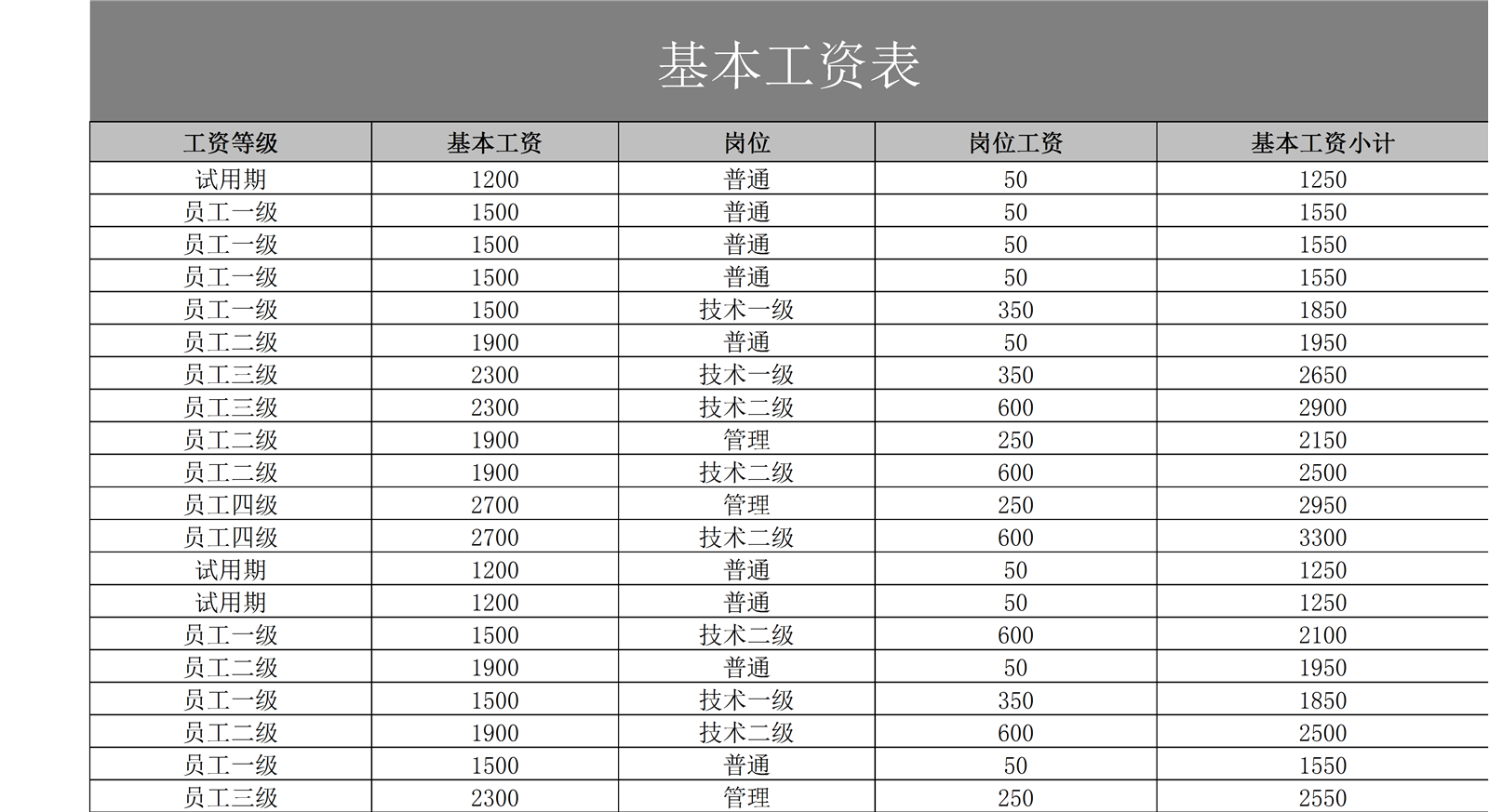 员工工资明细表