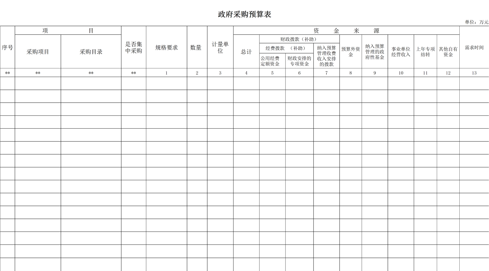 政府采购预算表