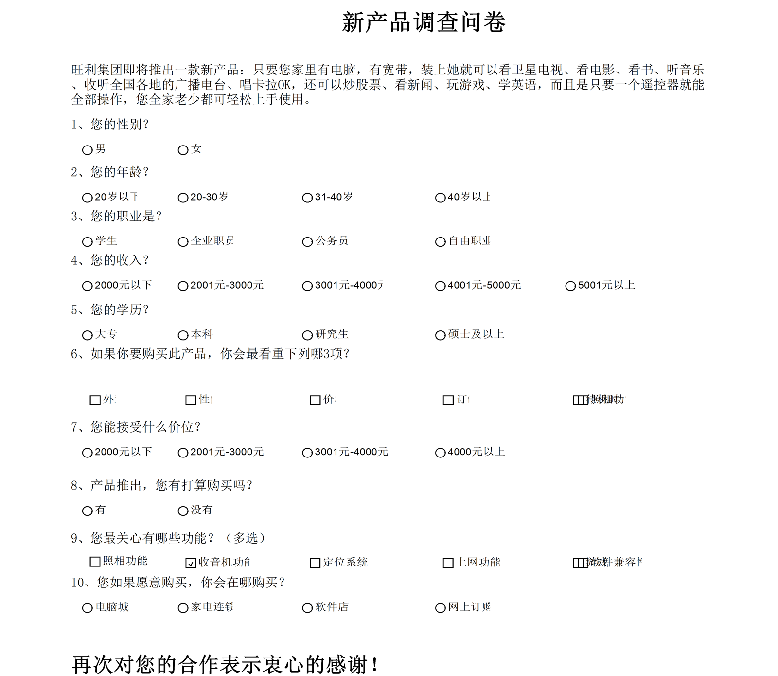 新产品市场调查问卷