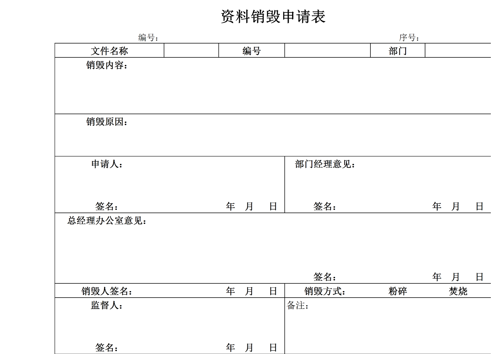 资料销毁申请表