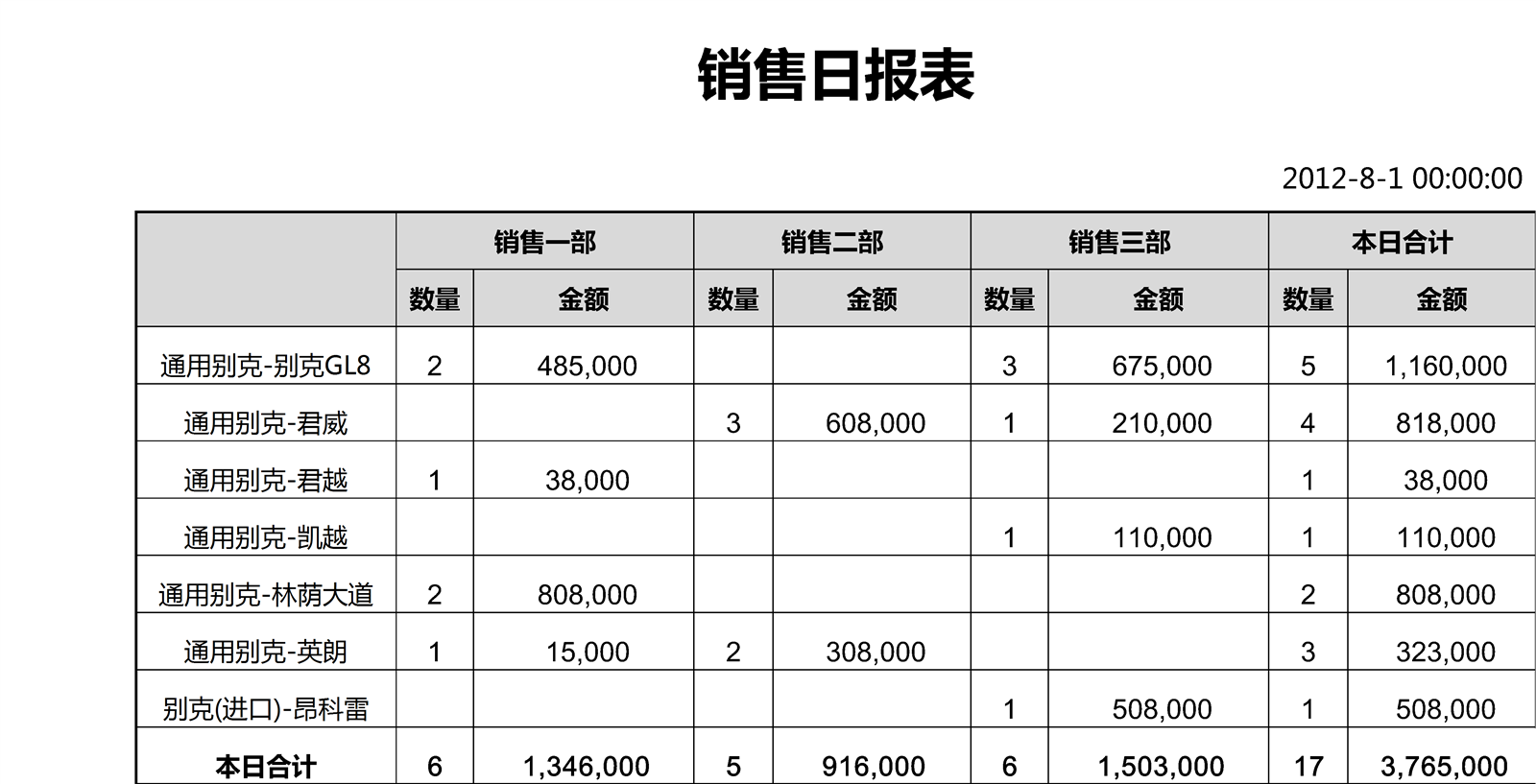 销售月报表