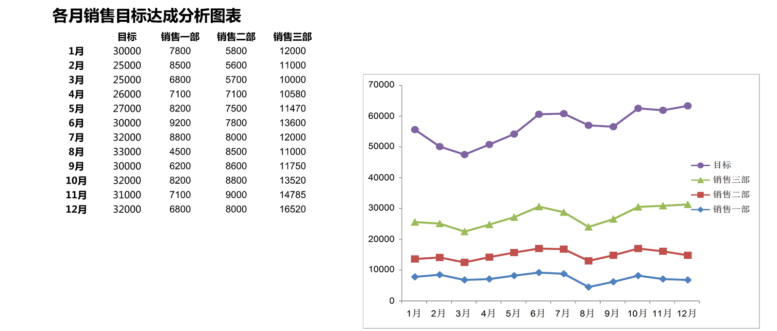 各月销售目标达成分析图表