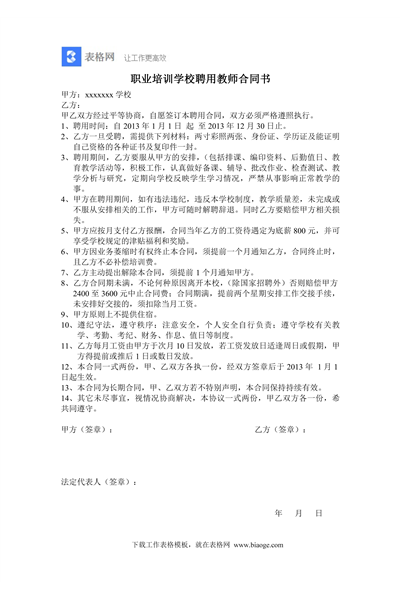 文件编码:1911190335职业培训学校教师劳动合同书 -