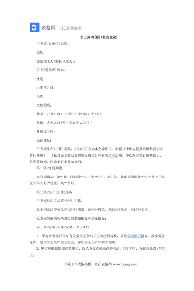 文件编码:1911190337职工劳动合同(私营企业)1 -